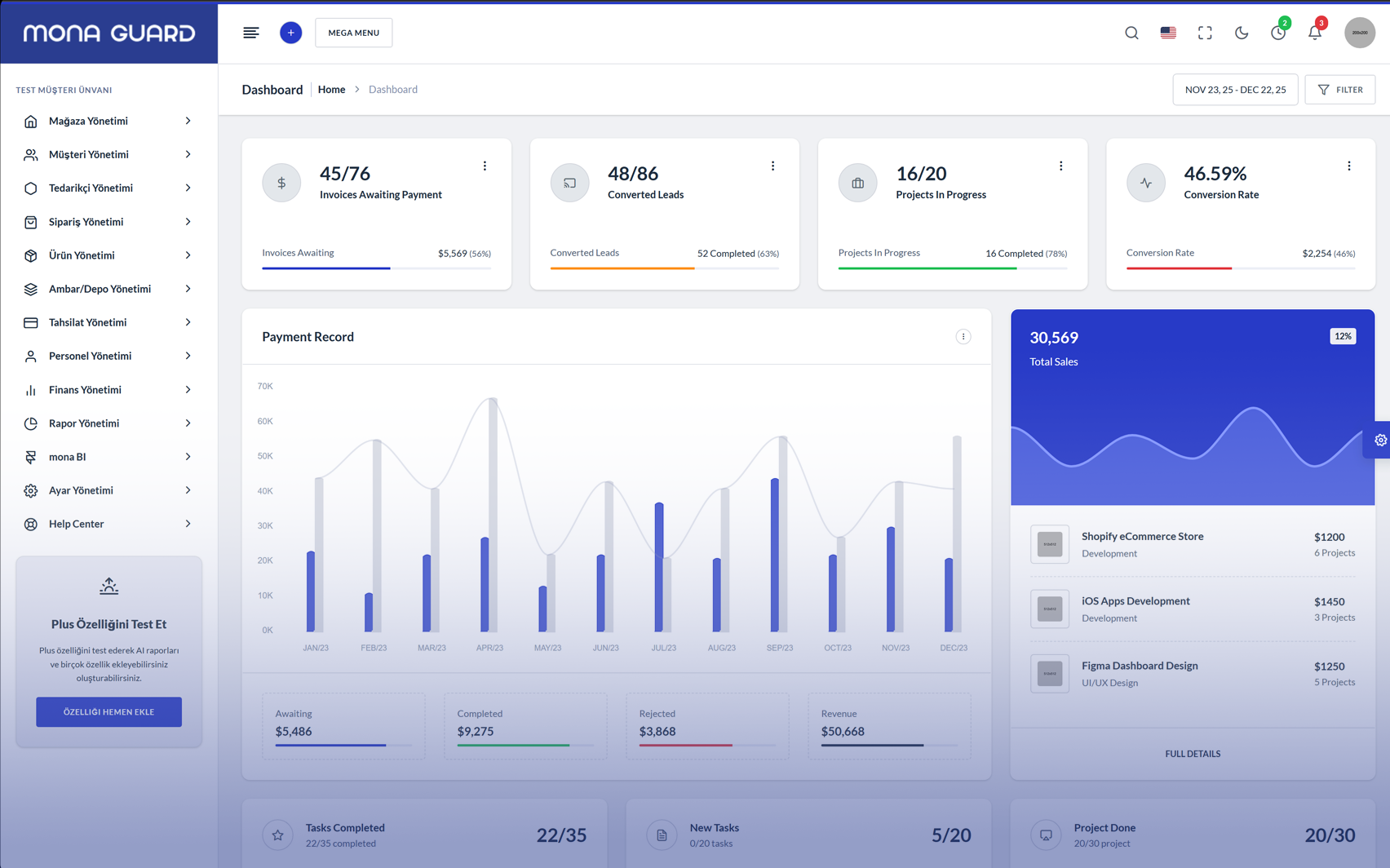İşletmenizin tüm operasyonlarını tek merkezden yönetmenizi sağlayan güçlü ve akıllı özelliklerle büyümeyi kontrol altına alın. Monaguard, süreçlerinizi hızlandırır, hataları azaltır ve veriye dayalı kararlar almanızı sağlayarak sürdürülebilir ve ölçülebilir bir büyüme sunar.